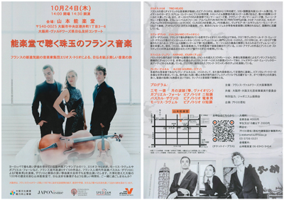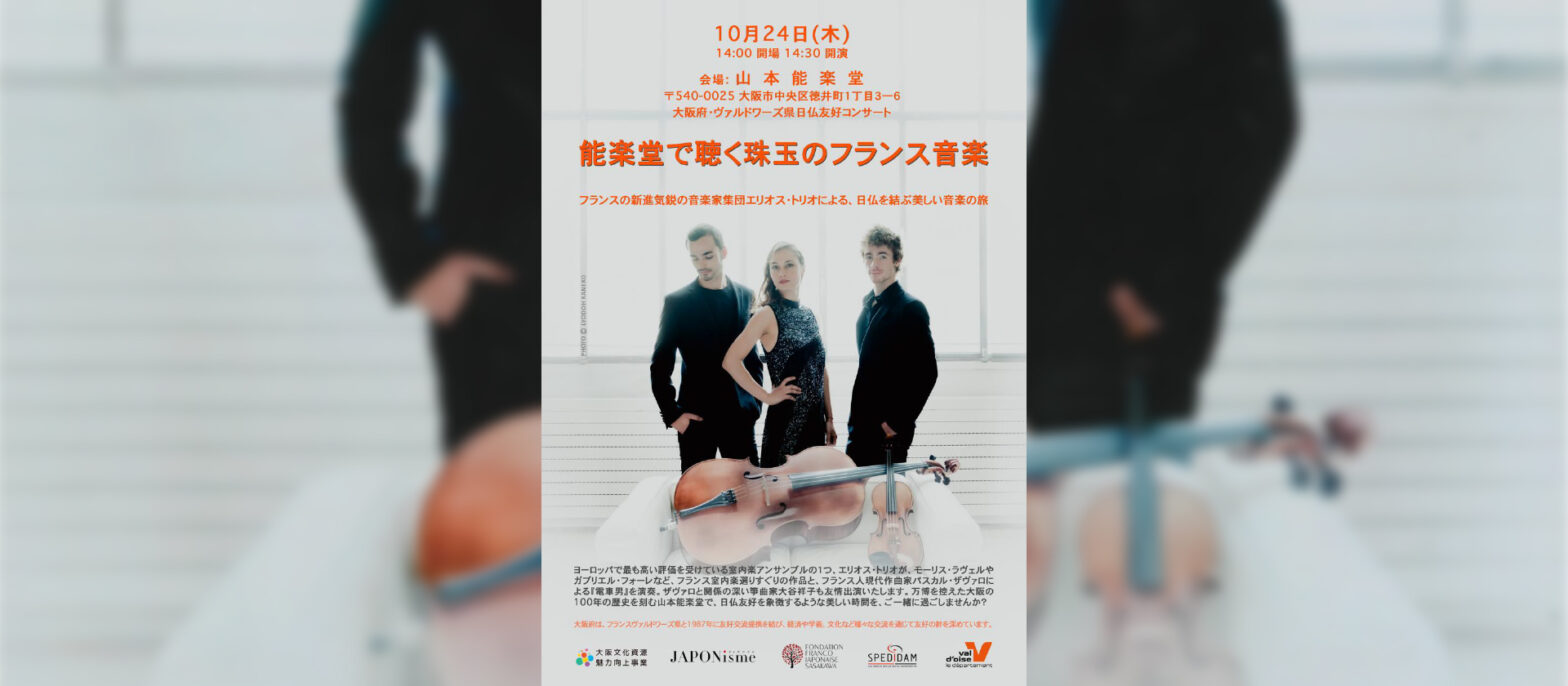 このたび、「大阪文化資源魅力向上事業」の国際交流プログラムとして、ヴァルドワーズ県から「エリオス・トリオ」が来訪し、日仏友好コンサートを開催します。