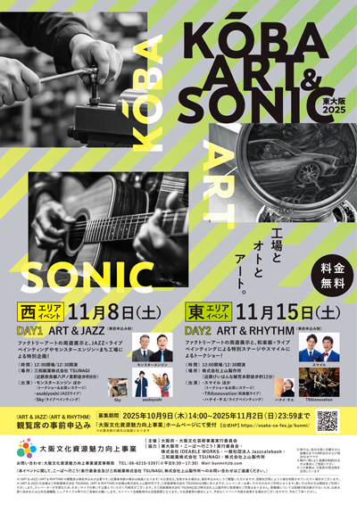 モノづくりの町、東大阪で開催される「オープンファクトリーこーばへ行こう!2025」との連携企画として、まち工場を舞台に“アート”と“音”が融合する特別なプログラムを開催します。