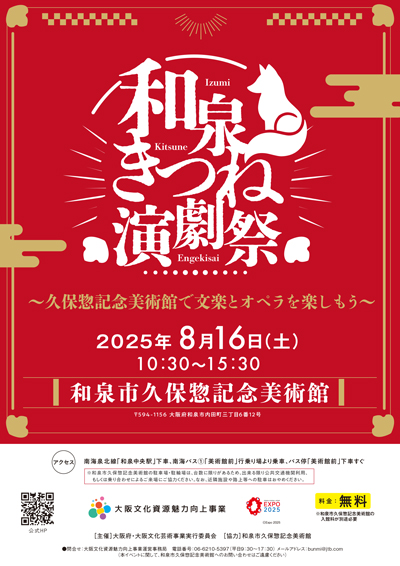 和泉市の北部、信太地域にのこる“葛の葉伝説”にも登場する「狐」をテーマに、人形浄瑠璃文楽「芦屋道満大内鑑」とオペラ「おこんじょうるり」をお楽しみいただける特別な舞台を、ラニーノーズをゲストに迎え上演します。