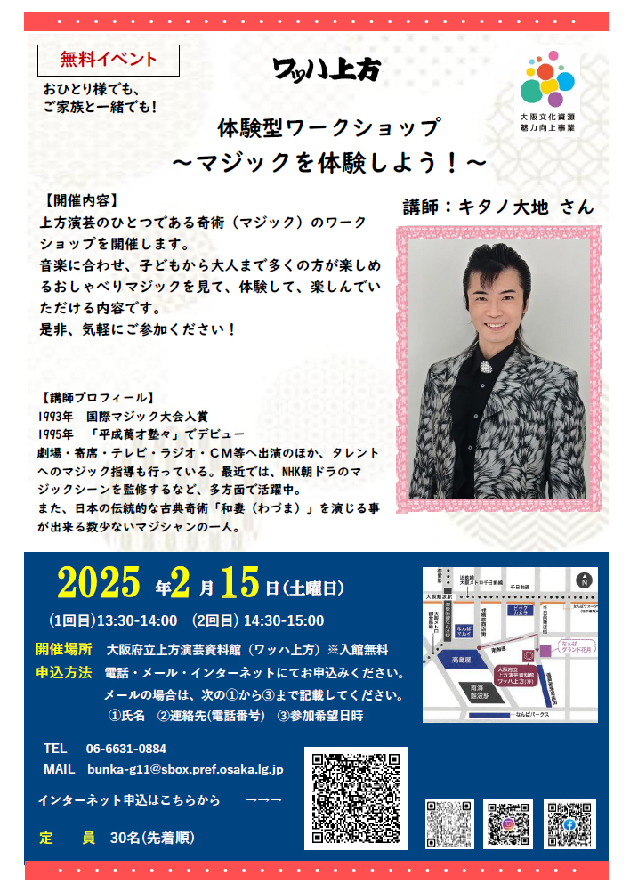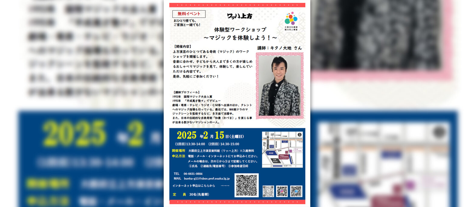 上方演芸のひとつである奇術(マジック)のワークショップを開催します。