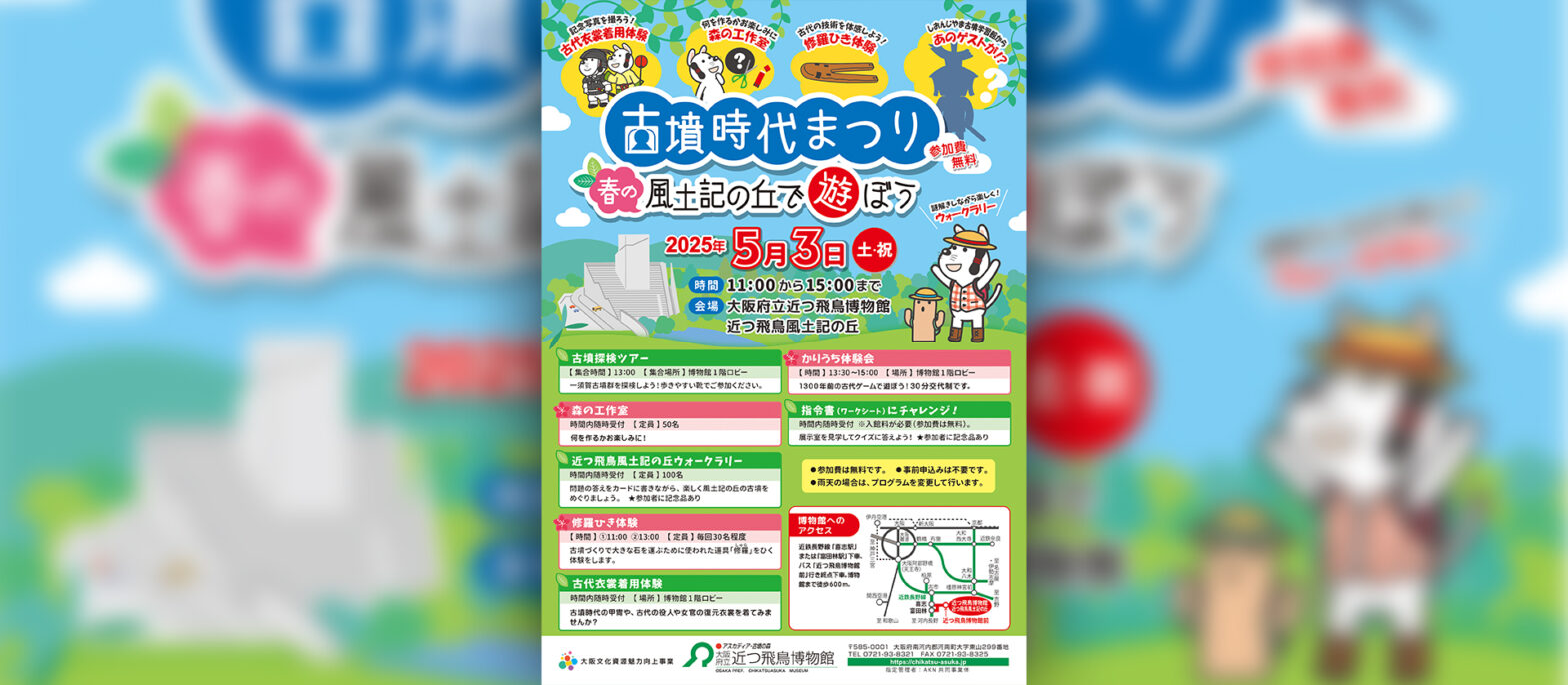 古墳探検ツアーや、森の工作、修羅ひき体験、ウォークラリー、古代衣裳着用体験など、楽しいイベントが盛り沢山!