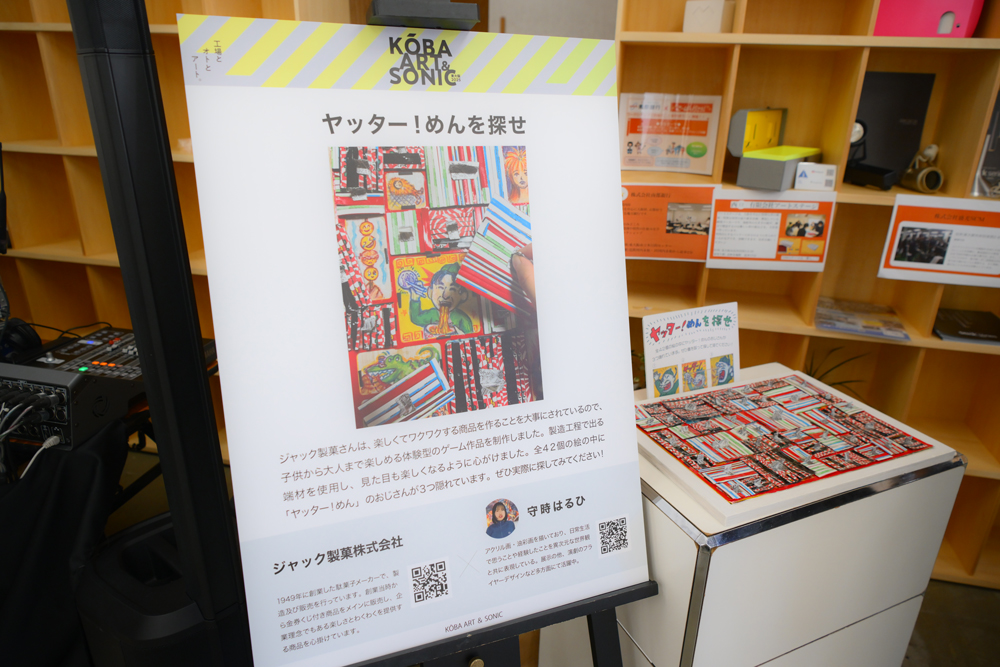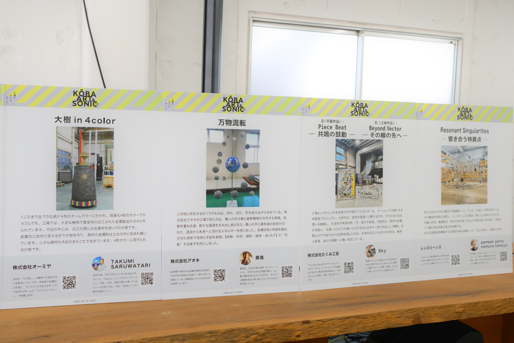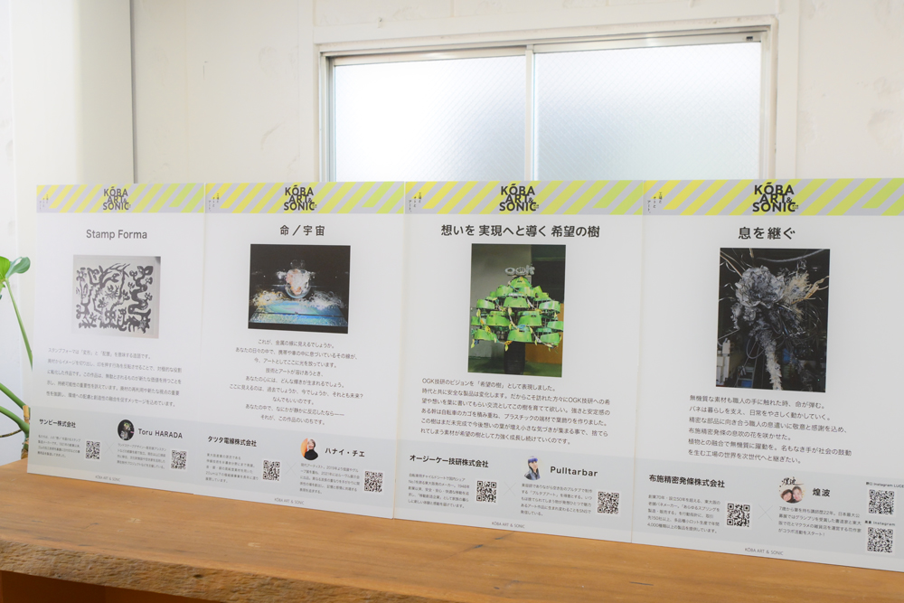また、「アーティスト・イン・ファクトリー東大阪2025」として、アーティストと東大阪の「まち工場」がコラボレーションを行いました。今年で3年目となるこの取り組みは、「まち工場」で制作されるアート作品を東大阪の新たな文化資源と位置づけ、その魅力を発信していくというもの。今年は10人のアーティストを10の工場とマッチング。大阪・関西万博のテーマでもあったSDGsの視点から、廃材を活用して作られたアップサイクルアートとして、オリジナリティあふれた「ファクトリーアート」作品を制作しました。作品は、制作が行われた各工場で展示されたほか、『KŌBA ART&SONIC』会場内でも一部の作品展示が行われました。