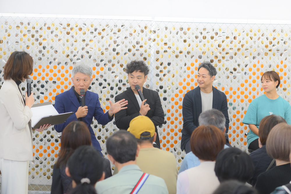 続いては、ゲストとのトークセッション。「アーティスト・イン・ファクトリー東大阪2025」をプロデュースした寺本大修氏、サクラテック株式会社 取締役COO中村貴広氏、また、「アーティスト・イン・ファクトリー東大阪2025」の作品制作の場となったサンビー株式会社 代表取締役社長 山本忠利氏。
