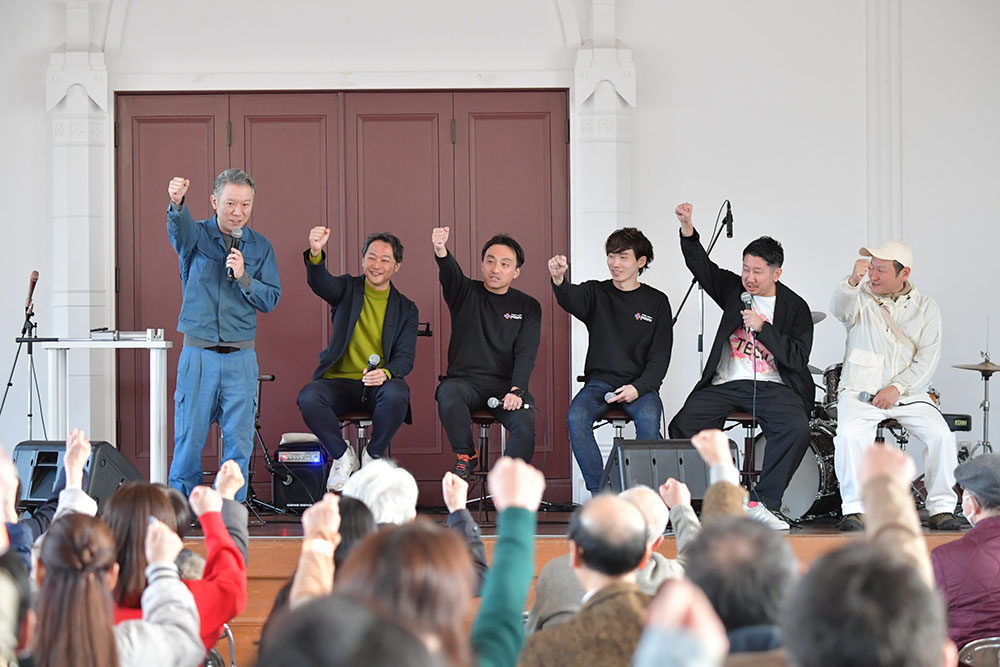イベントのラストは「ものづくりアートショー」。ファクトリーアートの魅力について、人気芸人の西森洋一氏(モンスターエンジン)らのトークショーを開催。登壇したのは西森氏のほか、株式会社水野製作所 代表取締役 水野佑哉氏、アーティストの松岡龍一氏、サクラテック株式会社 代表取締役社長 CEO 大橋翔太氏、アーティストの慈観雅之氏、株式会社IDEABLE WORKS 代表取締役 寺本大修氏というメンバーです。