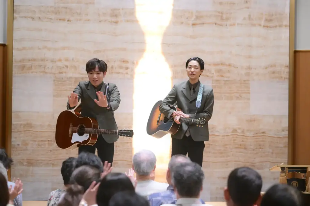 施設内にある和泉市久保惣市民ホールでは、人形浄瑠璃文楽とオペラの上演前にラニーノーズが登場。ランダムに選んだ観客の方に即興ソングをプレゼントし、会場を沸かせました。和泉市で印象に残っている場所については、陸上自衛隊信太山駐屯地で、真夏にレンジャー訓練をしたことがあるというふたり。山田は「過酷すぎて、和泉市がキライになりそうやったけど…」とこぼしながらも「貴重な体験ができました」と振り返りました。
