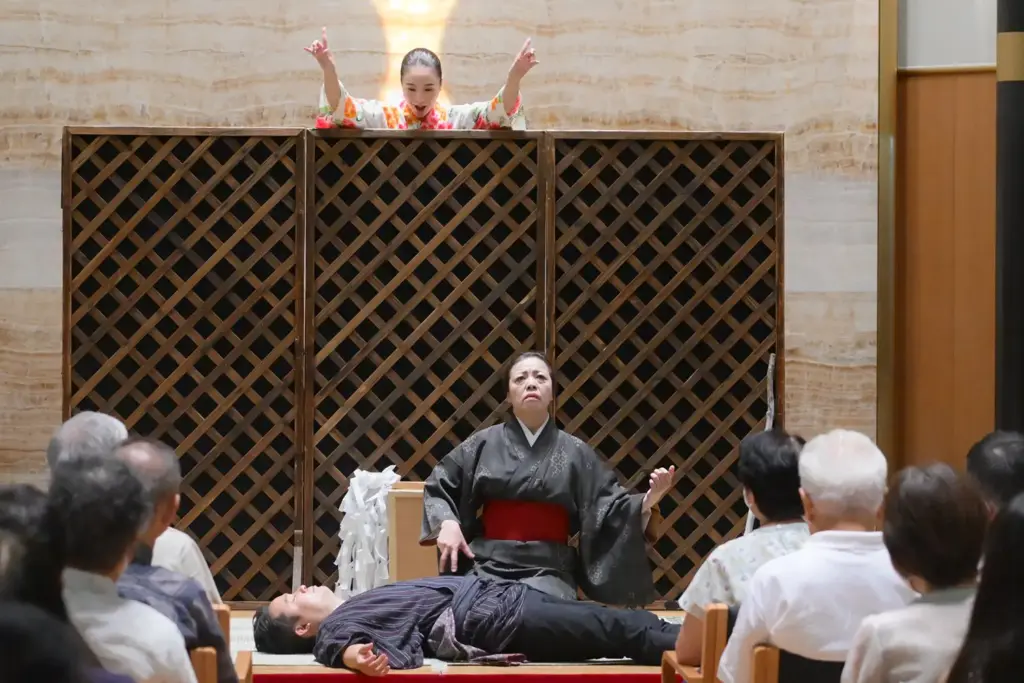 続いて、音楽と演劇が融合した舞台芸術、オペラの上演です。物語がすべて歌で表現されるオペラは、音楽・歌唱・演技が一体となって観客に感動を与える総合芸術。関西を中心に活動する声楽家団体「関西二期会」によるオペラ「おこんじょうるり」は、リズミカルなピアノの伴奏とともに、客席も舞台に使った迫力ある演目で、観る人を笑顔に。孤独なばばさまとキツネのおこんに通う心の絆が笑いあり、涙ありで表現されました。