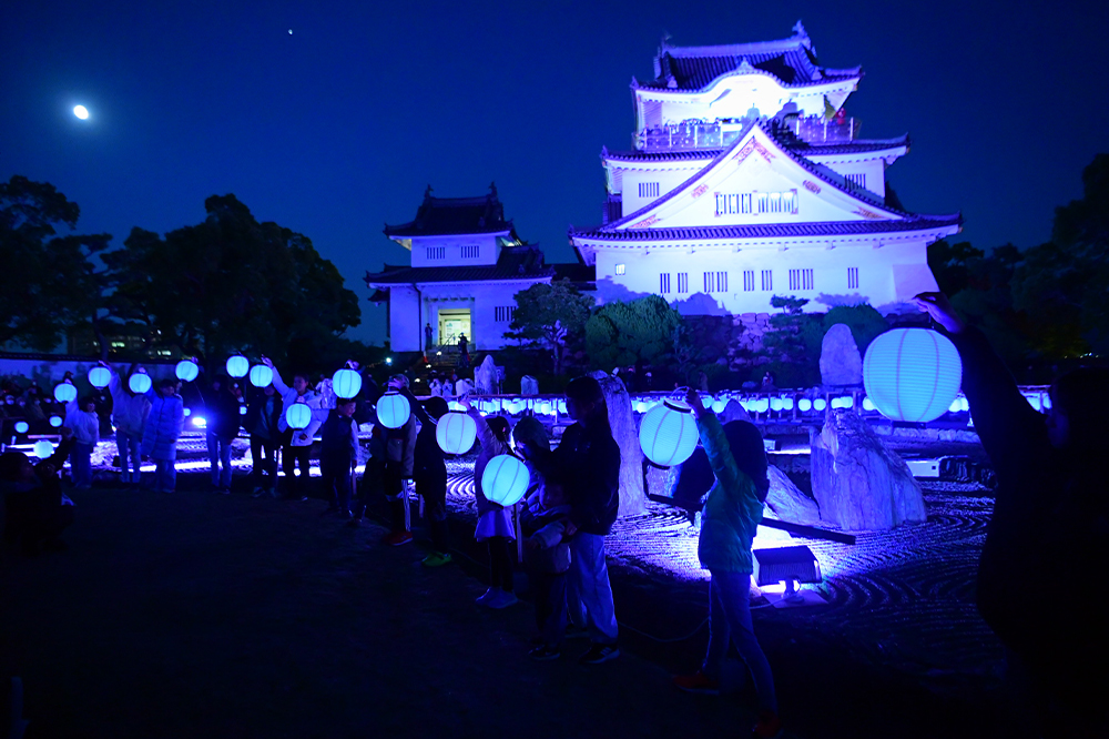 訪れた人々は、岸和田城の歴史、八陣の庭にまつわるストーリーに触れながら、光のアートにつつまれた夜の岸和田城を楽しみました。