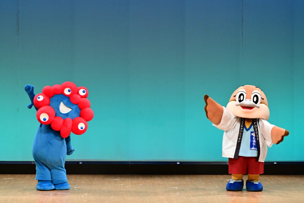 また大阪万博公式キャラクター・ミャクミャクと大阪府広報担当副知事・もずやんが登場し、撮影タイムの間に、MCから大阪・関西万博について、「いのち輝く未来社会のデザイン」をテーマに184日間開催、2,800万人が訪れる予定であること、海外からは150を超える参加国、民間企業13のパビリオンが出展されること、そして大阪府市が産学官民一体で出展する大阪ヘルスケアパビリオンのテーマが「REBORN」であり、未来の都市生活を体験できる、参加型のパビリオンになっていることなどが伝えられ、万博まで残り500日を切っていて、前売り券が発売されていることも告知しました。