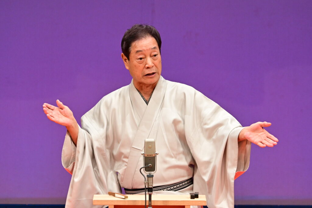 続いて月亭八方が舞台に。今年76歳であることを明かすと、免許更新でのヒトコマや孫とのやりとりなどを、らしさたっぷりにおもしろおかしく話しました。続いてはティーアップ(前田勝、長谷川宏)の漫才。営業先での舞台などについて、独特のテンポのしゃべりで聞かせると、しっかりと会場を盛り上げました。