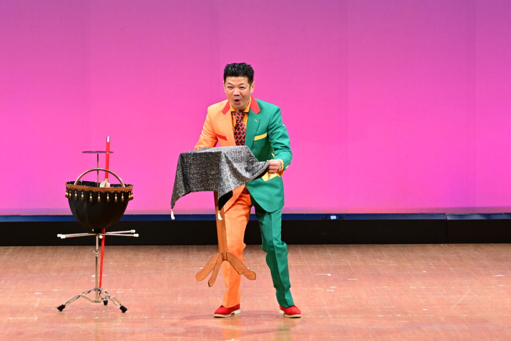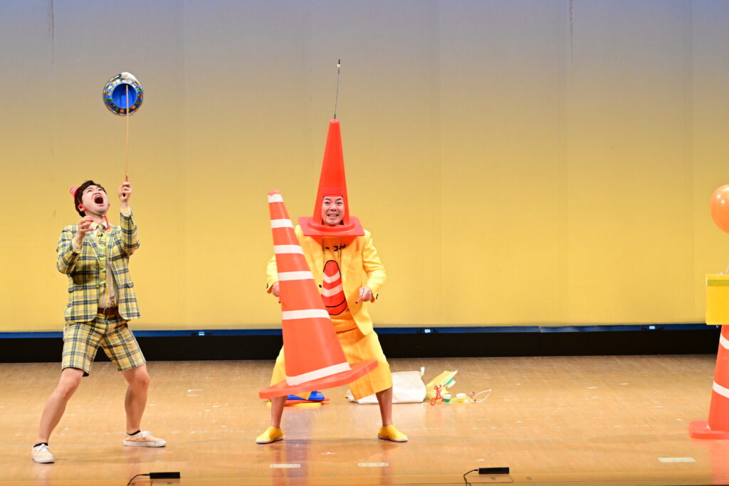 午後からの「上方演芸寄席 第二部」は、ビックリツカサのマジック、バタハリ(いながきスタイル、バッフォイかさはら)の大道芸からスタート。ビックリツカサが軽妙なトークで盛り上げると、バタハリの2人はカラーコーンと小道具を使った芸で会場を沸かせました。