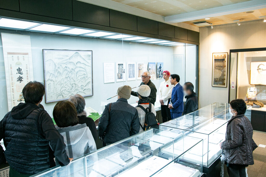 千早赤阪村立郷土資料館では、「楠木正成を知ろう! トークショー」を開催。ファンファーレと熱狂(こうちゃん、奥慎太郎)が参加し、千早赤阪楠公史跡保存会理事 尾谷雅彦氏が、千早赤阪村に伝わる楠木正成のストーリーを紹介しました。トークショーはファンファーレと熱狂の2人が自己紹介したあと、尾谷氏を呼び込みスタート。まず楠木正成公のイメージについて問いかけると、参加者からは「忠誠心がある」、「後醍醐天皇との関わり」などの声が上がります。尾谷氏が、楠木正成公は歴史上では5年ほどしか登場しないことを話すと、会場からは驚きの声も漏れます。そして、多勢の幕府軍と少数の楠木軍が戦った「赤坂城の戦い」などについても説明。資料館を巡るツアーでは、千早赤阪村の立体模型を使って、当時の武器や戦い方について解説したほか、城というものを考えたのは楠木正成公であること、そして初期の城には小屋くらいしか建物がなかったということなどが語られ来場者は楠正成公への知識を深めました。