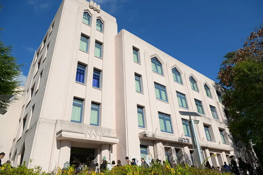 大阪大学・豊中キャンパス内にある大阪大学会館は、昭和3年に建てられた歴史的建造物で、平成16年に国の登録有形文化財に登録されています。秋晴れの爽やかな土曜日、レトロで重厚感のある外観が紅葉の鮮やかな色と響き合い、まるで絵画のような景色をつくり出していました。