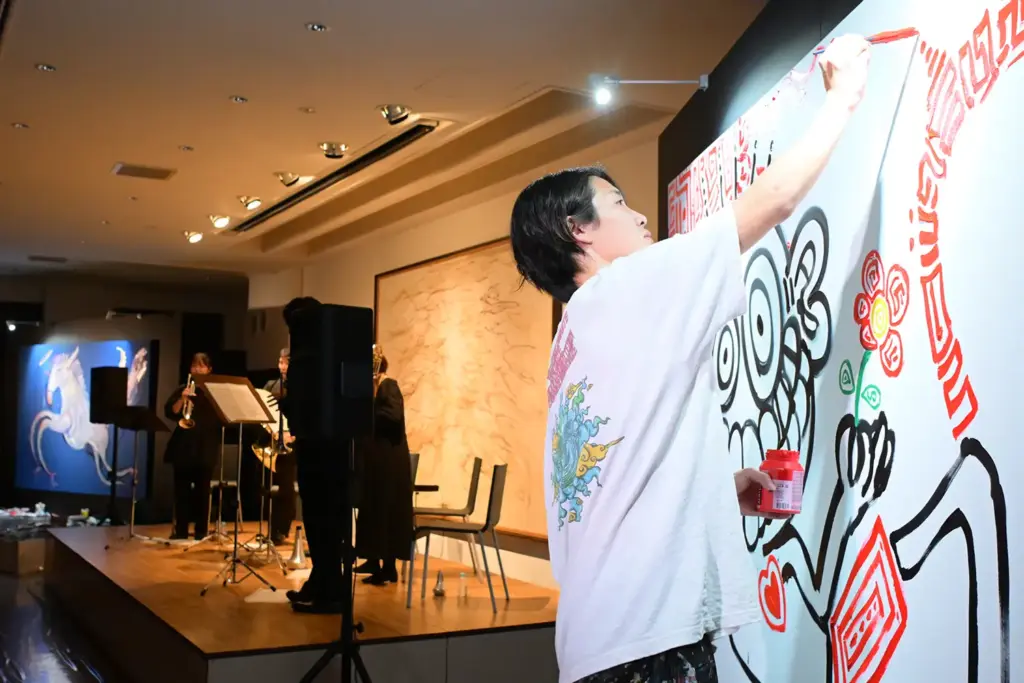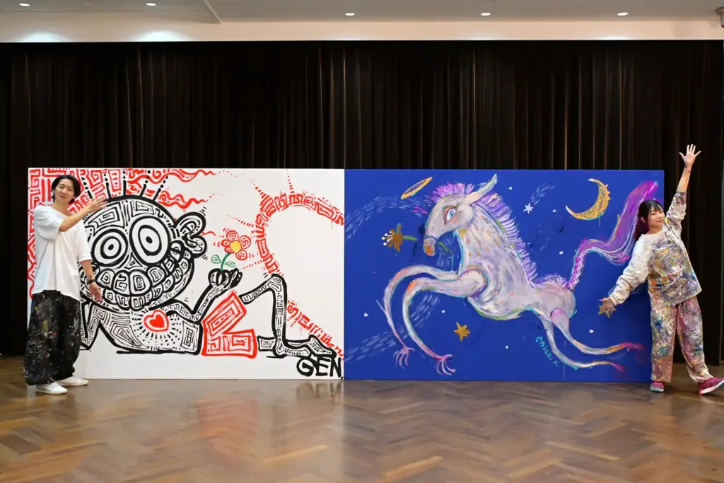パフォーマンスするのは、“毎日がもっとワクワク、キラキラ、トキめくもの”を世界に発信するchiaki kohara氏、「アートは世界を救う」を信念に国内外で活動する玄(GEN)氏。異なる世界観を持つふたりが、同じ曲でそれぞれのキャンバスに同時に作品を作っていきます。「一体どうなるんでしょう!これは実験的なイベントになりそうですね」と田中氏も期待をふくらませます。